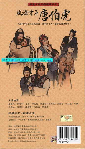 楊麗花歌仔戲精選:風流才子唐伯虎 (民國73年台視年度大戲 迴響熱烈 值得典藏! )(dvd6片裝)
